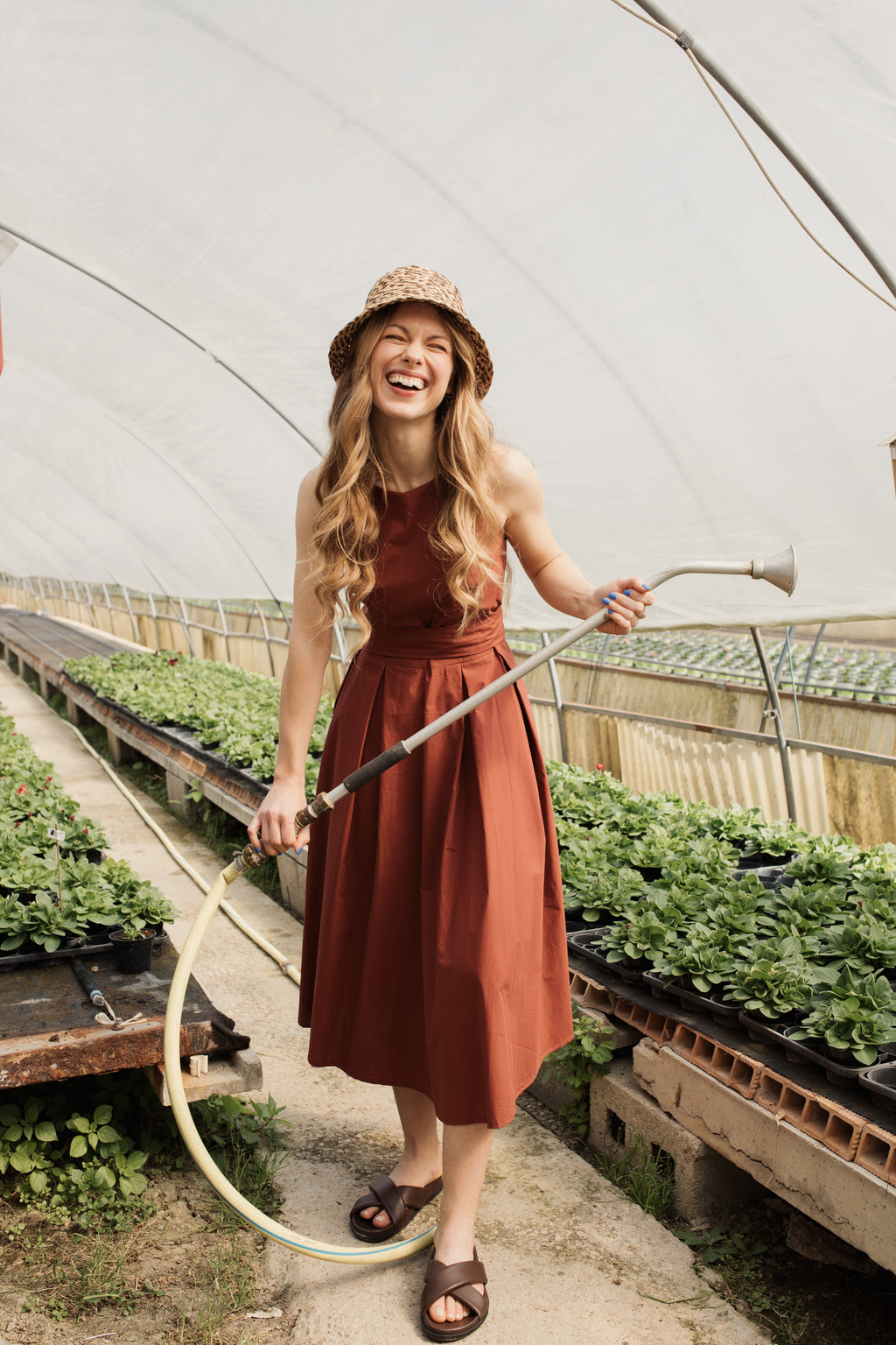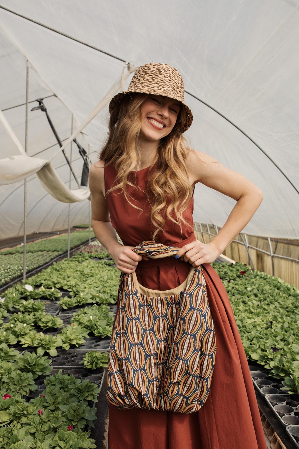Silhouette fluide in sinergia con tessuti naturali come lino e cotone, contribuiscono al senso generale di leggerezza e comfort senza costrizioni. Stampe macro-botaniche e floreali stilizzate si alternano a texture materiche e dettagli a frange, definendo un’estetica organica e sofisticata.