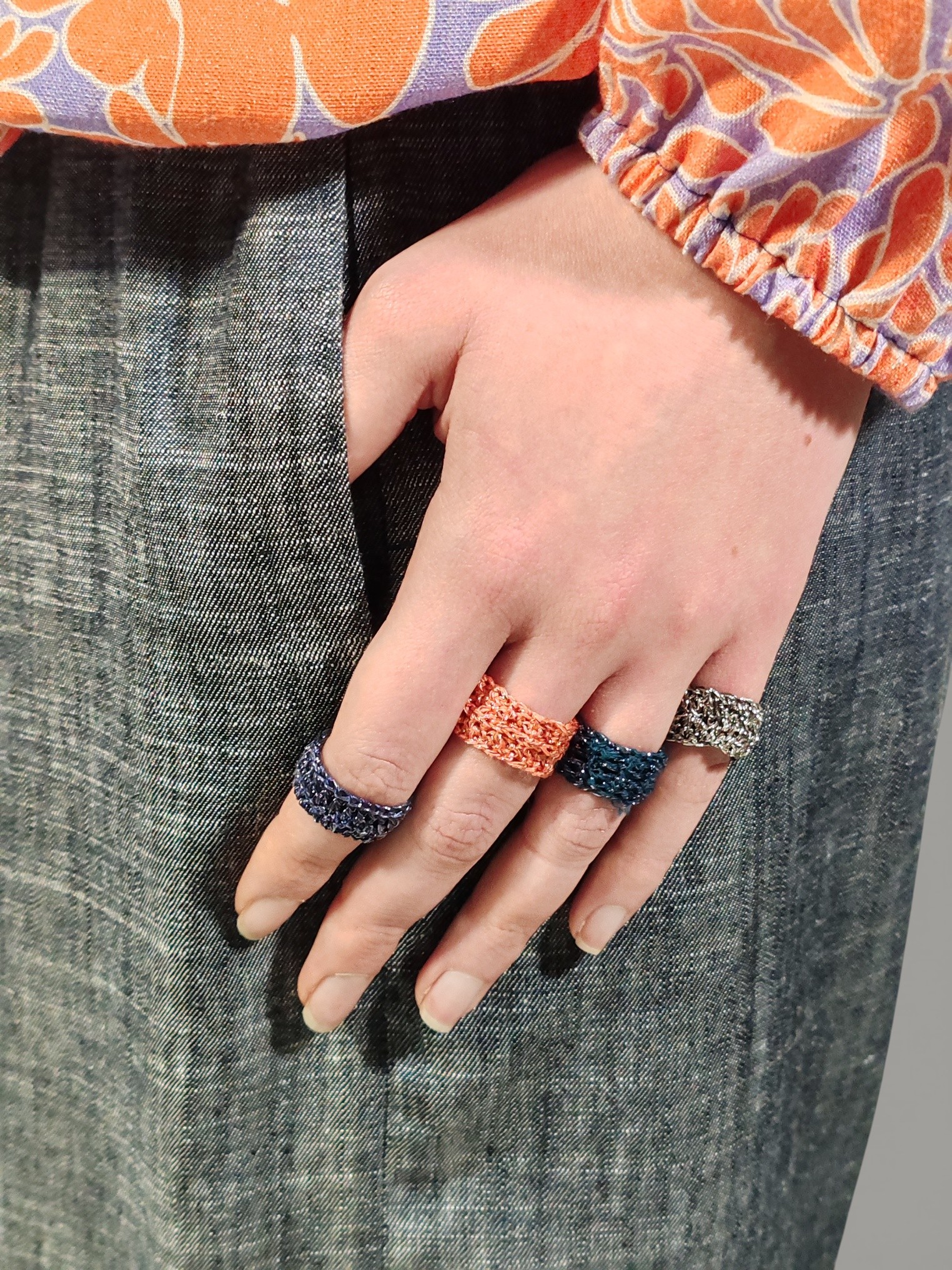 Le maniche ampie terminano con polsini elastici sottili, permettendo di regolare la lunghezza e accentuare l’effetto “balloon” a piacere.
