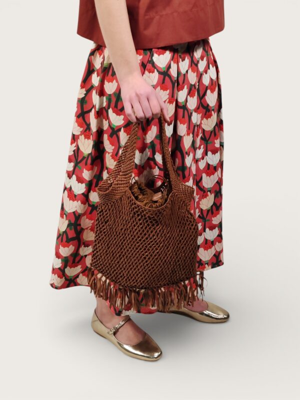 Hand-woven pastel multicolor knot bag, Rosamunda’s brand iconic workmanship