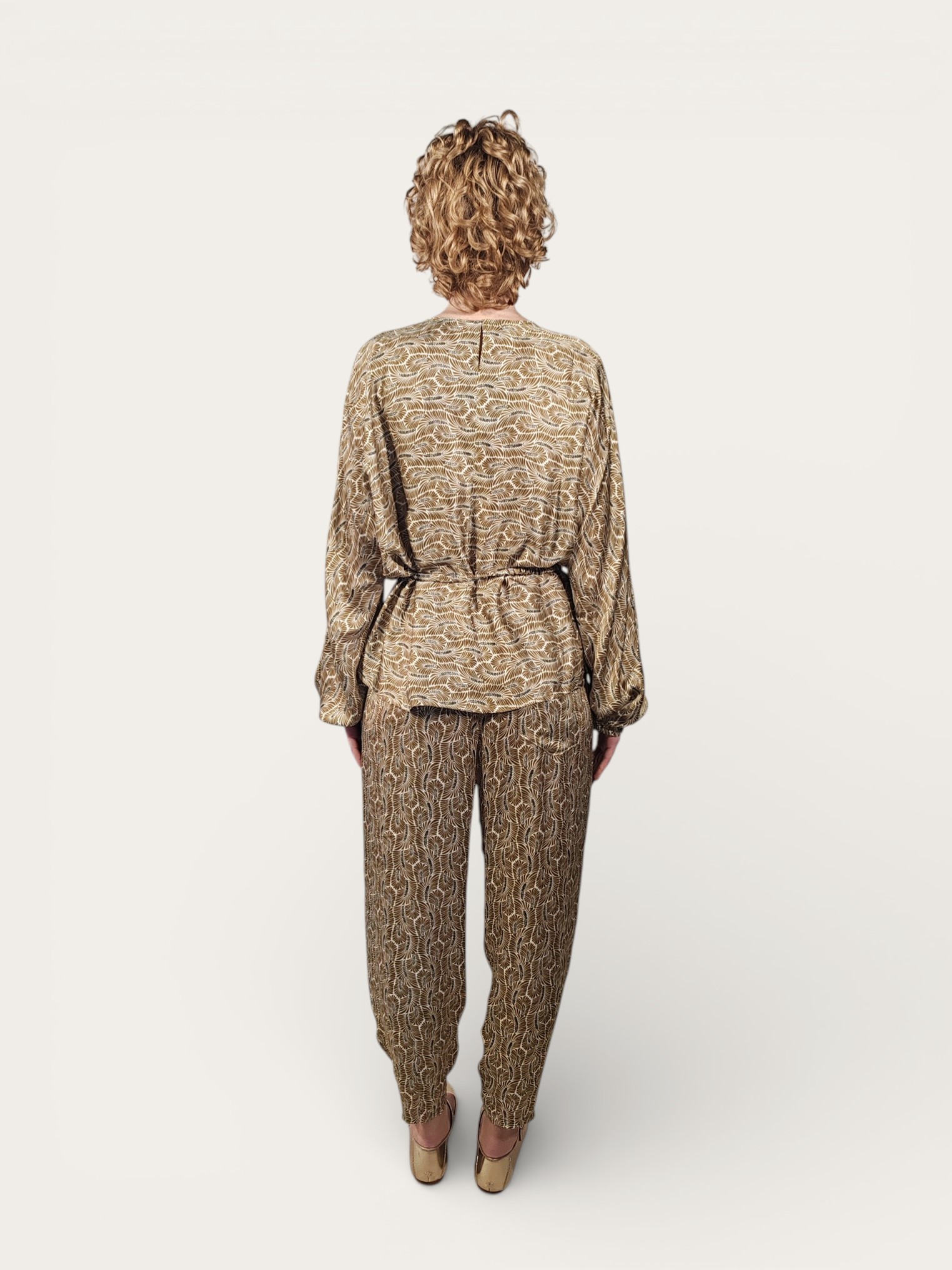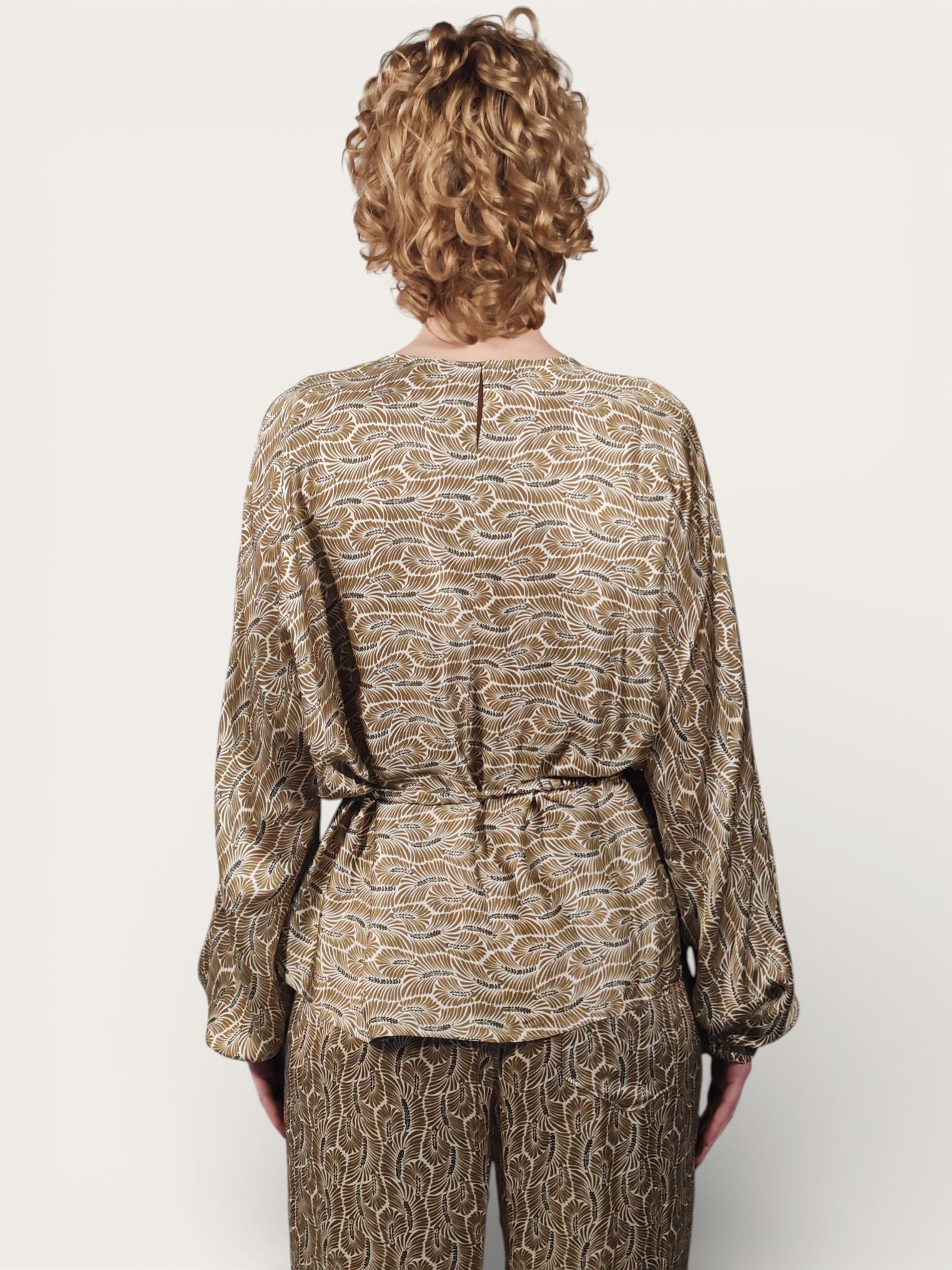 Blusa in viscosa effetto satin, che dona al capo un movimento naturale e una lucentezza discreta.