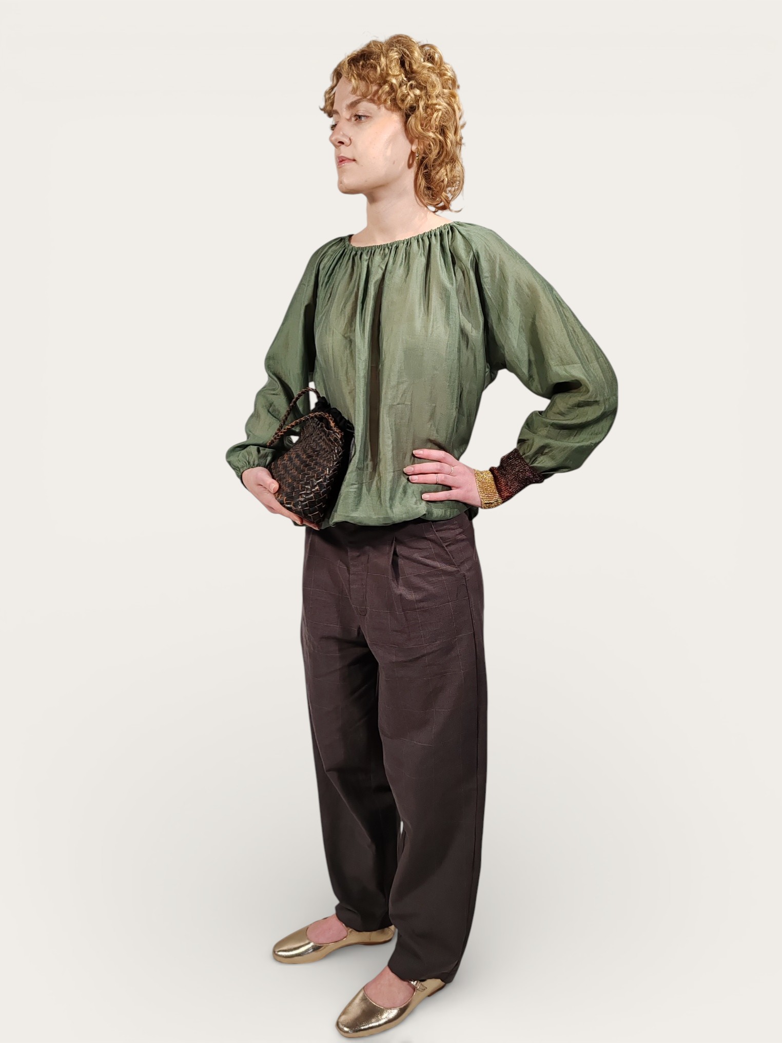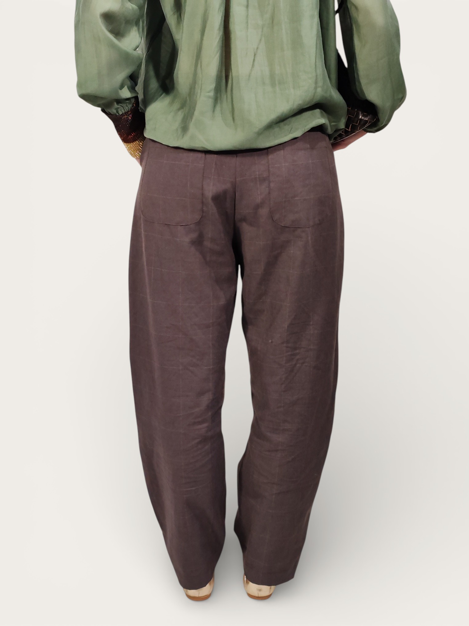 Pantalone Barrel-Cut in Cotone/ Lino Finestrato (Windowpane)