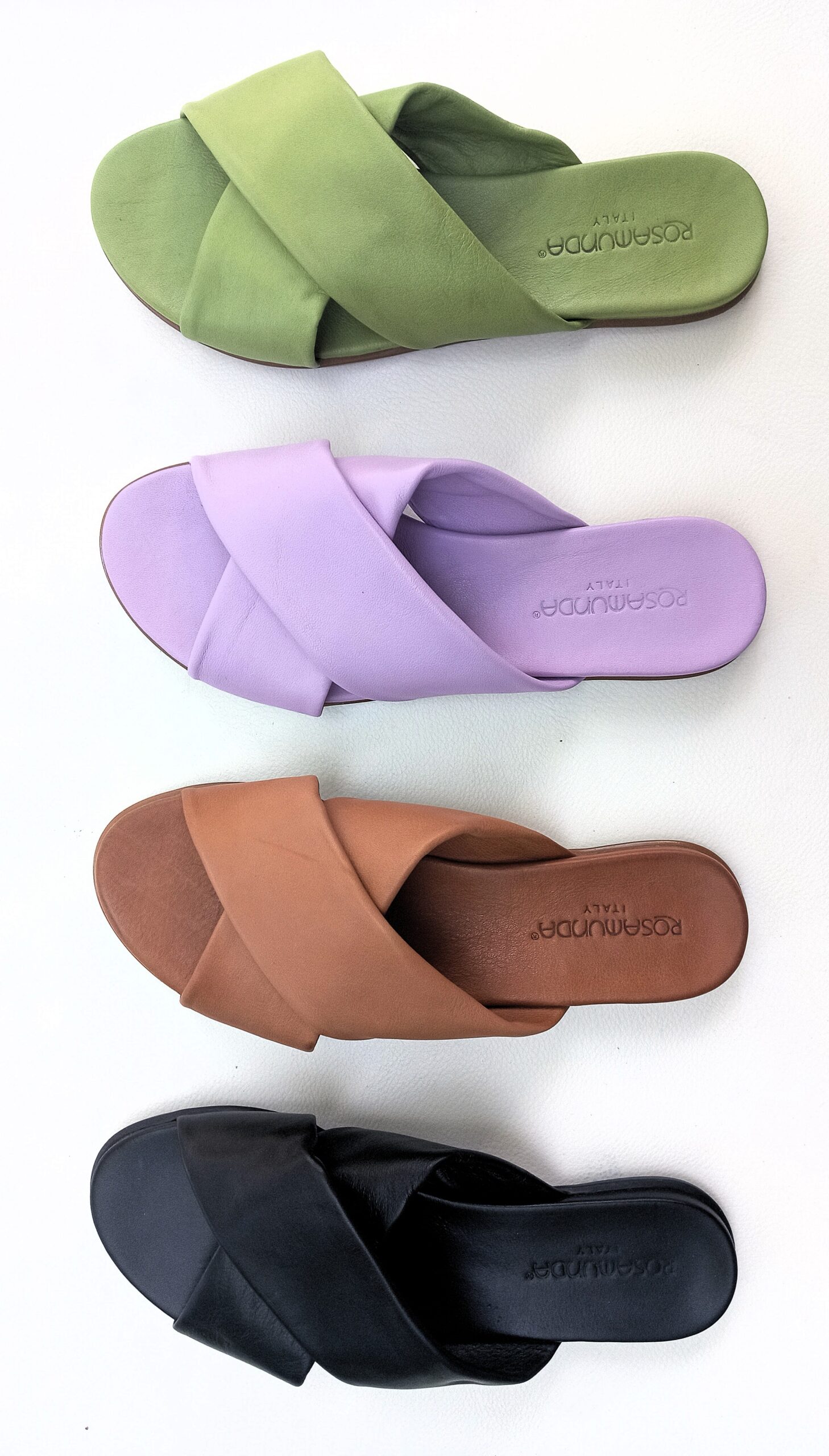 Design a Fasce Incrociate: La tomaia è caratterizzata da ampie fasce in pelle morbidissima che si incrociano sul collo del piede, offrendo una tenuta sicura e una silhouette moderna.